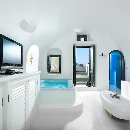 Minibar finns i en kokvrå som även har vattenkokare, kylskåp och köksredskap. Mezzo Cafe, som serverar rätter av det medelhavsköket, ligger cirka 5 minuter bort till fots. Den närmaste busshållplatsen är Oia, som finns mycket nära Blue Canaves Boutique Villa. Soldäck och solterrass finns på plats, tillsammans med båtuthyrning.